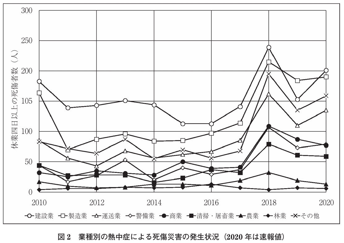 本稿では、近年の熱中症対策情報のアップデートとして、今年4月20日に厚生労働省より発出された通達「職場における熱中症予防基本対策要綱」1)と、その元となっているJIS Z 8504:2021(2021年3月改定)2)について、従来の通達との相違点を中心に解説するとともに、昨年来問題となっている新型コロナ対策と熱中症の関係についても考えていきたい。