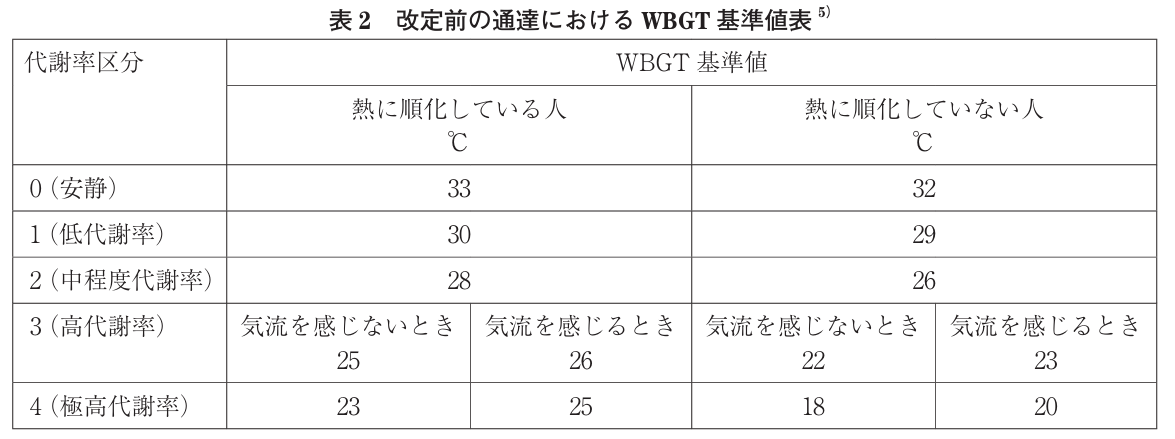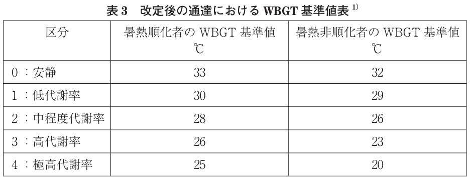 このほど、厚生労働省より新たな熱中症対策指針として、「職場における熱中症予防基本対策要綱」が発出された(令和3年4月20日 基発0420第3号1))。従来の通達からの変更点は、「WBGTの算出式」、「WBGT基準値表」、ならびに「着衣補正値」となっており、これらは本年3月に改定・発行されたWBGTに関するJIS(JIS Z 8504:20212))の改定内容に沿ったものである。本通達の発出にともない、これまで用いられてきた熱中症対策に関する通達(平成17年7月29日付け基安発第0729001号4)および、平成21年6月19日付け基発第0619001号5))は廃止された。
