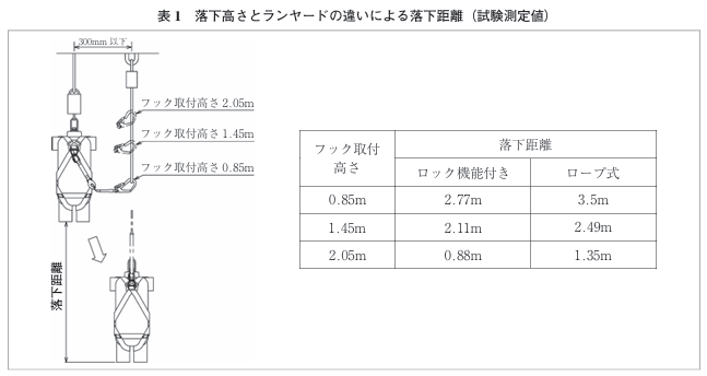 落下距離は,墜落制止用器具の性能の重要な要素の一つでもある。