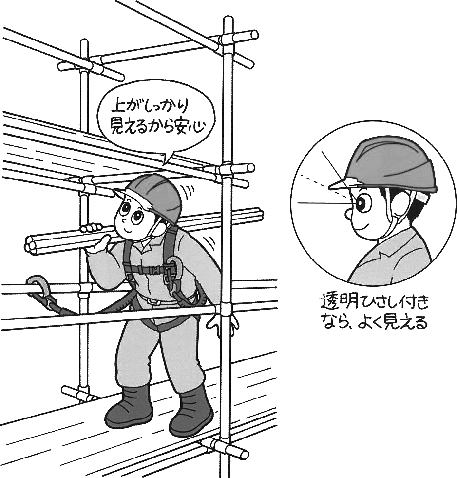 また、作業者自らが高所から墜落したり、足元が滑って転倒したりしたときに、頭部が受ける衝撃を軽減する。