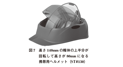 出張などで自分のヘルメットを持参する際、それを旅行バッグに納めようとすると、想像以上に大きくて嵩張り、困ることがある。そうした、ヘルメットを持ち運ぶニーズから、ヘルメットをたたんで高さを低く抑えることができる「携帯用ヘルメット」が作られた(
