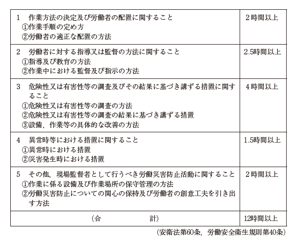 労働衛生管理の視点に立った職場環境の改善が必要である。職場における目に見えない疾病についてその「こわさ」を伝え、有害な要因をなくすとともに、より快適な職場環境を作り出すために職長の役割は大きくなっている。特に近年の化学物質による労働災害の発生状況に鑑み、これまでの「個別規制型」から、事業者自らが選択した方法に従って化学物質管理を推進する「自律的管理」に的確に対応することが求められている。これに伴って、職長教育の対象業種に「食料品製造業」及び「新聞業、出版業、製本業及び印刷物加工業」の2業種が新たに追加された。また、リスクアセスメントの実施義務対象物質の大幅な増加、労働者に対する適正な保護具使用の監視の強化など、職長の役割はますます高まってきている。